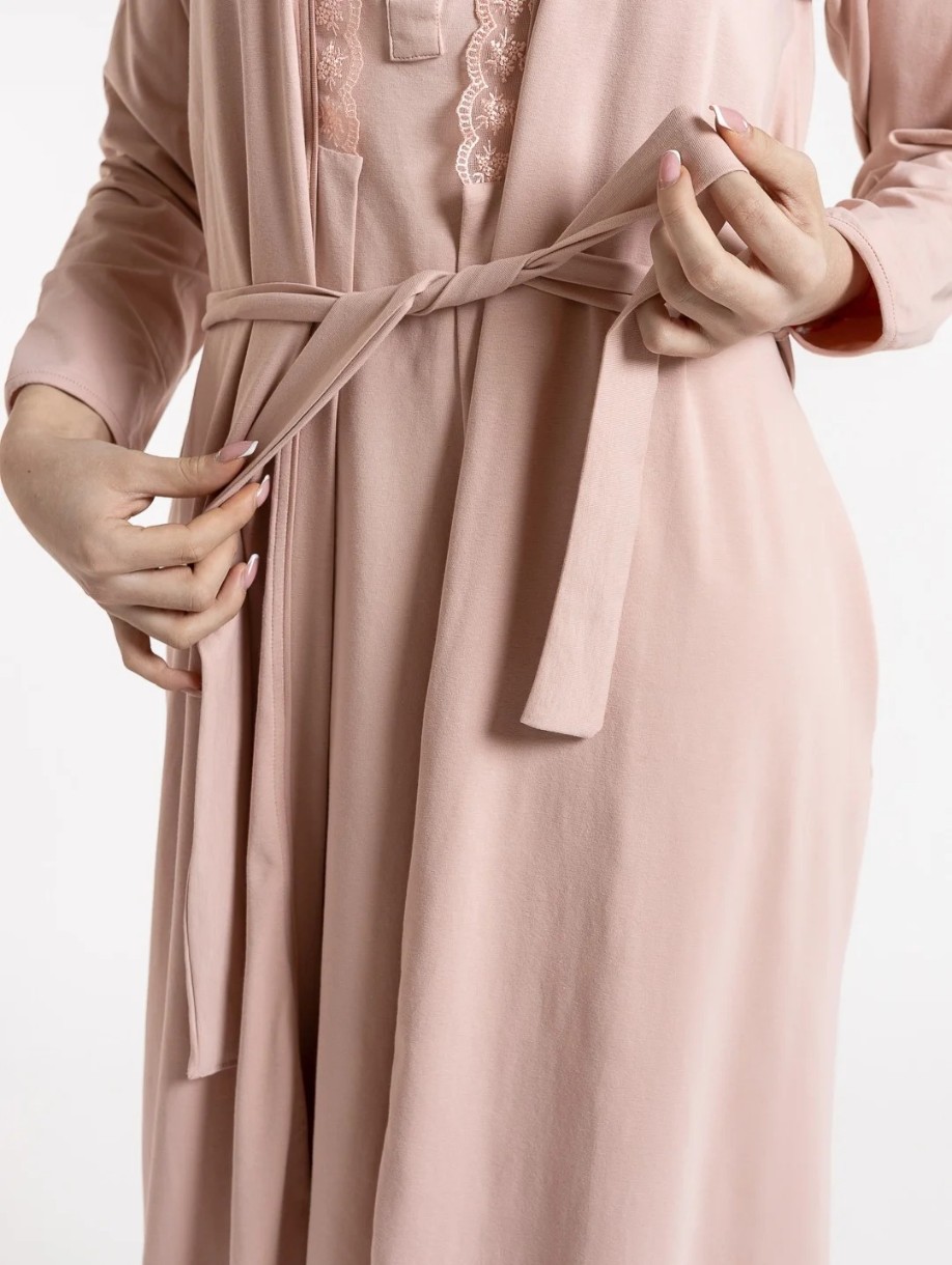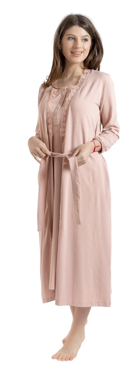 Этот халат – элегантный предмет женской ночной одежды. Он изготовлен из мягкого и приятного на ощупь хлопкового материала и имеет свободный крой длиной до колена. Этот халат можно носить дома или в отпуске, он идеально дополнит любой ночной комплект. Он станет отличным выбором для женщин, которые хотят чувствовать себя комфортно и одновременно привлекательно.