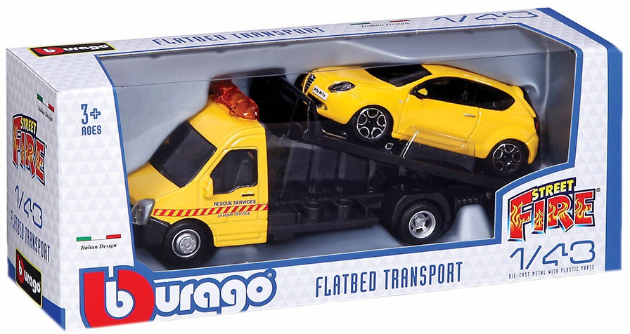 Автотрейлер в кузове которого находится модель « ALFA ROMEO MITO » (Bburago 18-31406) – это две игрушки в одной. Сам автотрейлер является точной копией известной модели спецтехники, а входящая в комплект машинка ALFA ROMEO MITO даст возможность разыграть приключенческий сценарий по доставке автомобиля в ремонтную мастерскую. Основная особенность автомобиля – выдвижная рампа для съезда авто. Не забыты такие мелочи, как остекление и внутреннее оборудование кабины. Модель выполнена в масштабе 1:43 из металла и прочного пластика. Раскрашена в соответствии с оригиналом износоустойчивыми красками. На боковые поверхности нанесены все необходимые надписи и обозначения.