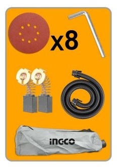 Встроенная рабочая подсветка обеспечивает комфортную работу даже при плохом освещении. В комплект входит гибкий шланг длиной 2 метра и мешок для сбора пыли, что делает работу более чистой и безопасной. Также в комплекте: 8 шлифовальных кругов и запасной комплект угольных щеток.