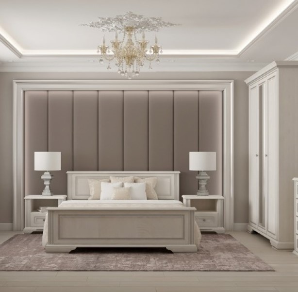 В комплектекровать, 2 прикроватный тумбы, шкаф