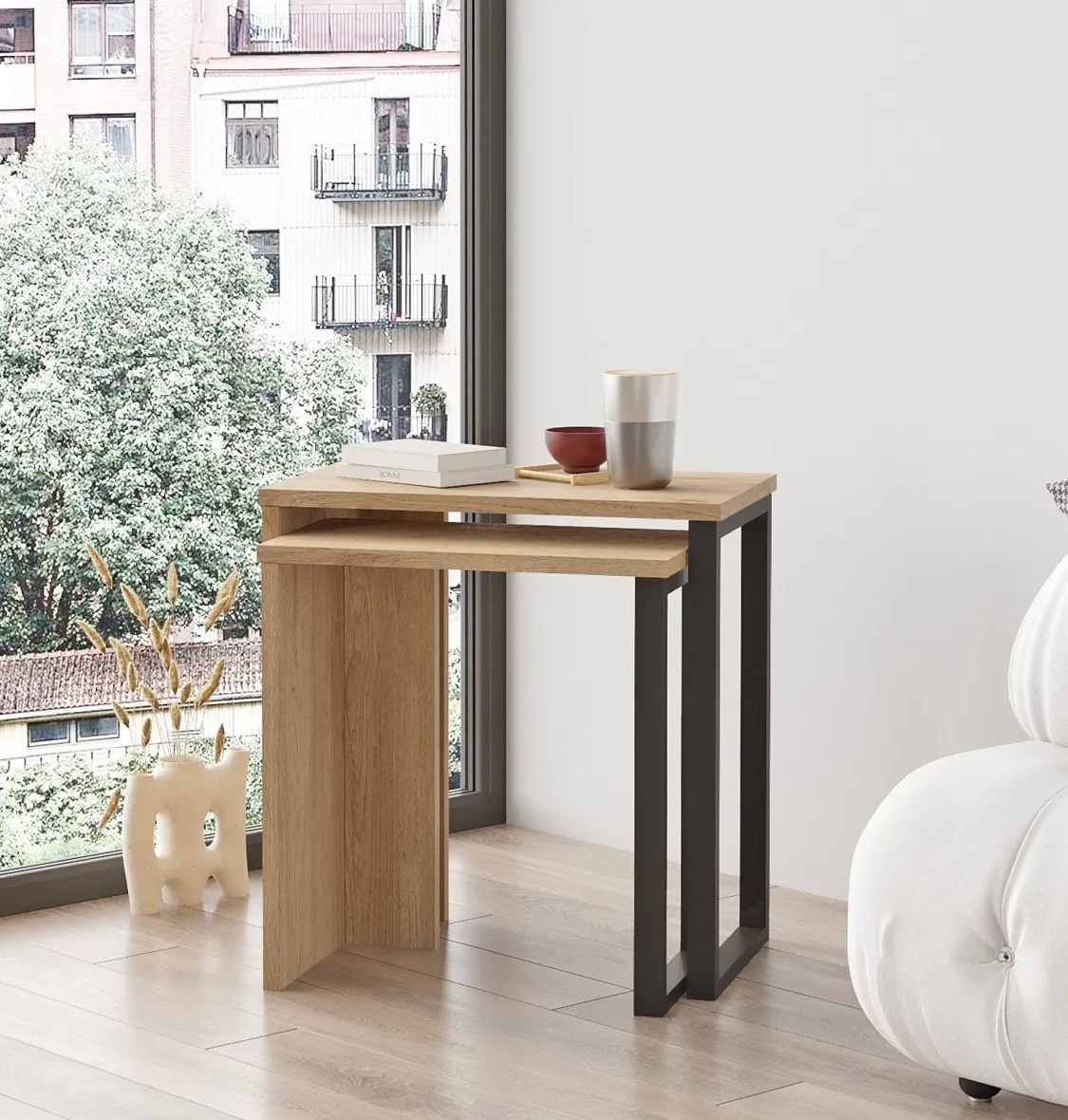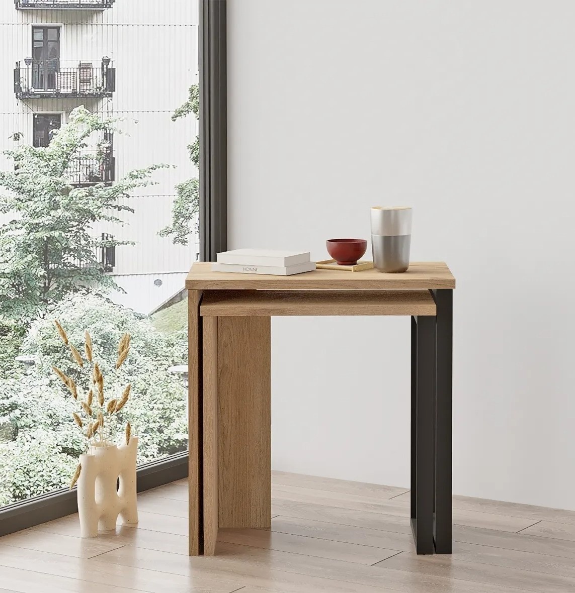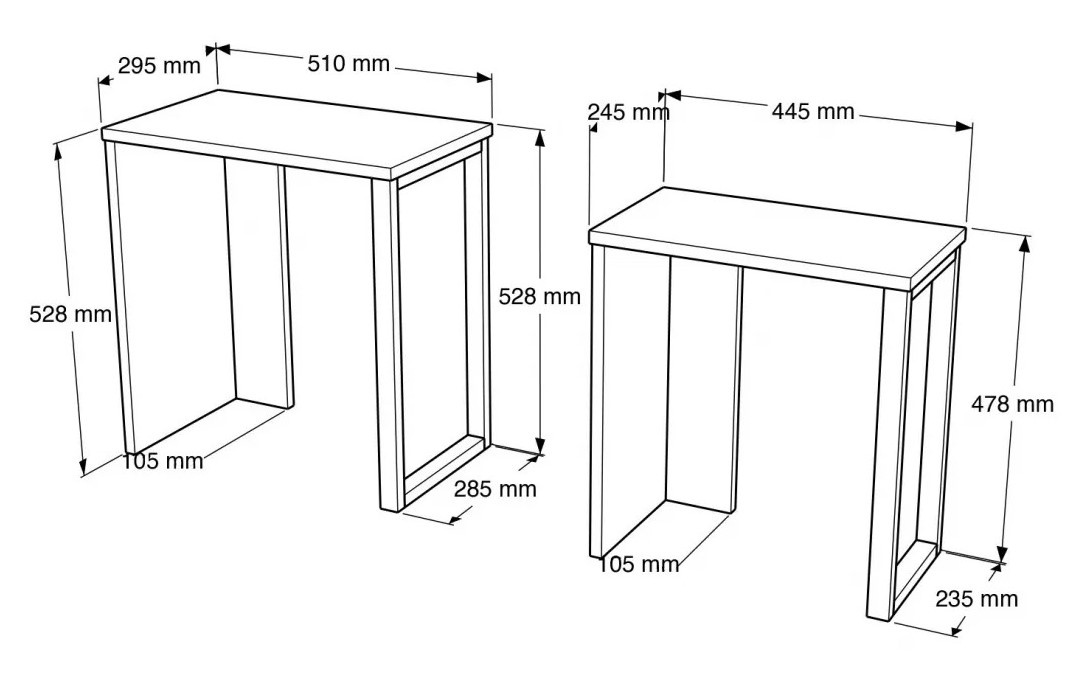 Комплекты из двух столиков разного размера создают удобное решение для экономии места. Когда дополнительная поверхность не нужна, меньший столик легко помещается под большим, освобождая пространство.