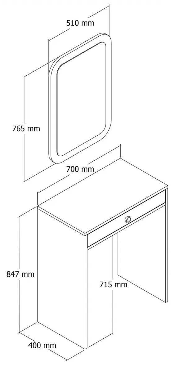 Туалетный столик изготовлен из ламинированных ДСП-панелей толщиной 18 мм, что обеспечивает прочность, стабильность и долгий срок службы даже при регулярном использовании.
