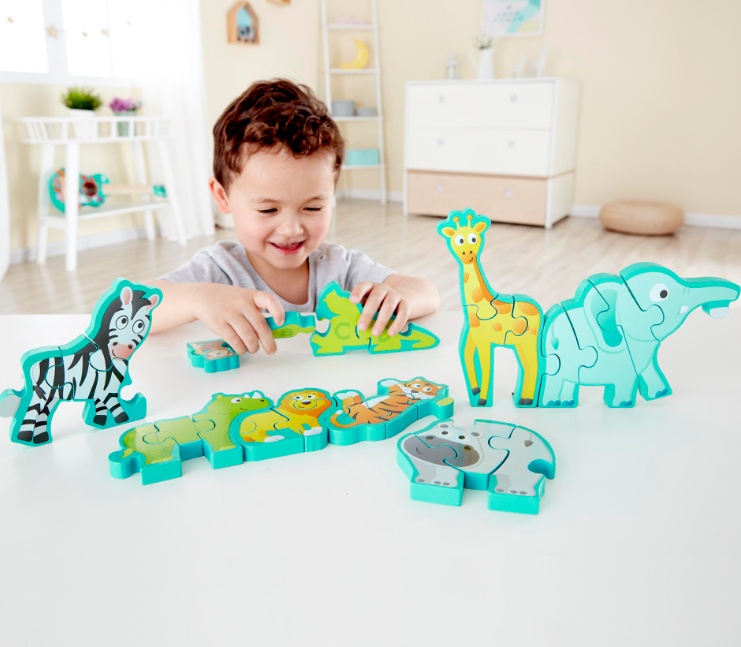 Данные пазлы красиво и оригинально сделанны, с дикими животными на одной стороне и алфавитом на другой. Головоломка может стоять на столе.