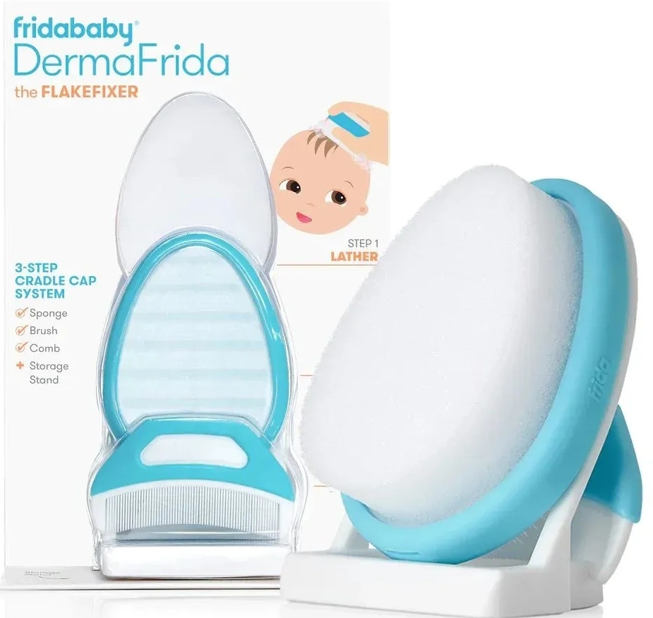 DermaFrida FlakeFixer-эффективное и бережное решение для ухода за кожей головы малыша и удаления молочных корочек без неприятных senzații. Система сочетает мягкую губку из PU-пены, щетку с нежной щетиной и пластиковый гребешок, обеспечивая деликатный, но результативный уход. Эргономичный дизайн упрощает использование, а безопасные материалы без BPA делают продукт надежным выбором для родителей с первых месяцев жизни ребенка.