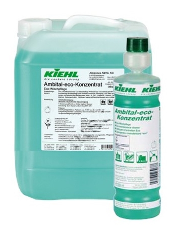 Ambital-eco-Konzentrat – перспективный препарат, обеспечивает высококачественную уборку и уход за полами с сохранением окружающей среды. Хорошо очищает полы, высыхает без разводов, образует на поверхности нескользкую и прозрачную защитную плёнку, не снижающую собственного блеска пола. Коэффициент трения скольжения поверхности покрытого Ambital-eco-Konzentrat составляет от 0,4 до 0,6 . Коэффициент соответствует требованиям стандарта DIN 18032,часть 2, предъявлeнных к полам в спортивных сооружениях (испытано лабораторией Отто-Граф института, г. Баден-Вюртемберг). Состав продукта Ambital-eco-Konzentrat направлен на сохранение качества окружающей среды и разрешает присвоение ему «Экологического знака Соответствия» Европейского Союза.