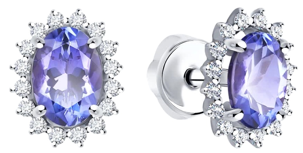 Серьги из белого золота с бриллиантами и танзанитами Sokolov 6024355-3 2,03g