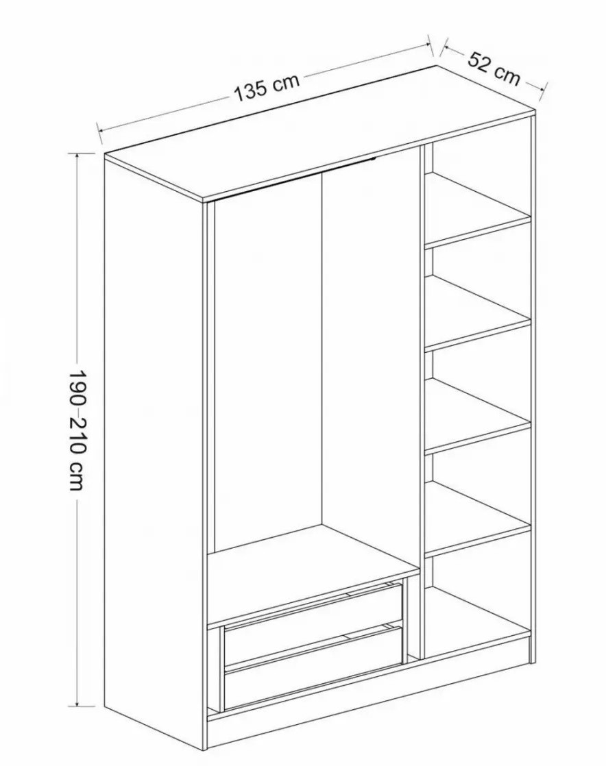 Шкаф Trendy Kale Mebran 190 White 190x135x52cm GTR001815