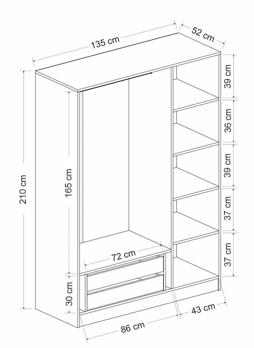 Если вам надоели переполненные шкафы и беспорядок, самое время добавить в жизнь порядок и стиль. Этот шкаф изготовлен из плит, покрытых 100% меламином, что делает его не только прочным, но и визуально привлекательным.