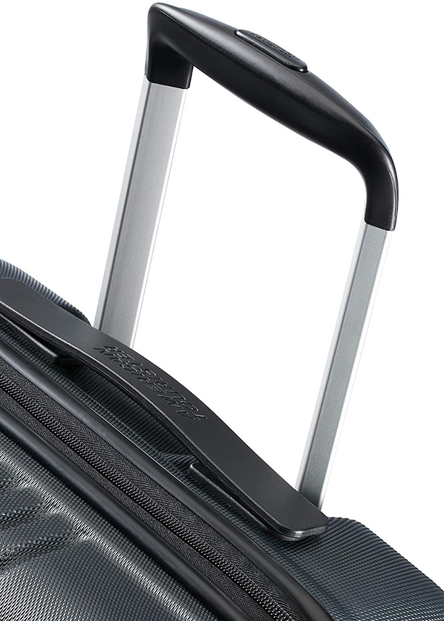 Пластиковый чемодан на колесах American Tourister 34G-51001 Tracklite Spinner — настоящий подарок для путешественников, которые ищут багаж в стильном индустриальном дизайне по доступной цене. Модель сочетает в себе современный облик, практичный интерьер, малую массу и проверенные временем материалы и комплектующие. Изгибы корпуса не только придают ему внушительный внешний вид, но и добавляют жесткости во всех направлениях.