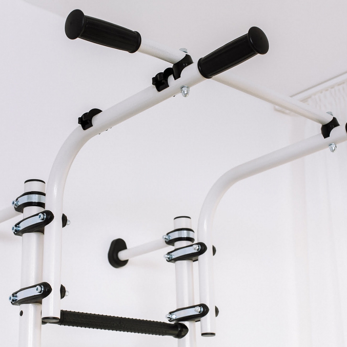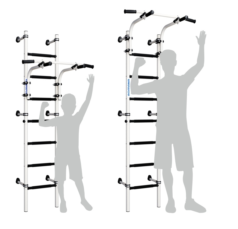 Спортивный комплекс ROMANA S9 - универсальное решение для квартиры или дома. Он устанавливается к стене. Обладает лаконичным дизайном, можно выбрать из двух расцветок - черный или черно-белый. В комплекте идет лестница и регулируемый по высоте турник. Его можно перемещать по вертикали, подстраивая под рост тренирующегося. Металлоконструкция комплекса выдерживает вес до 100 кг (испытывается при 200 кг).