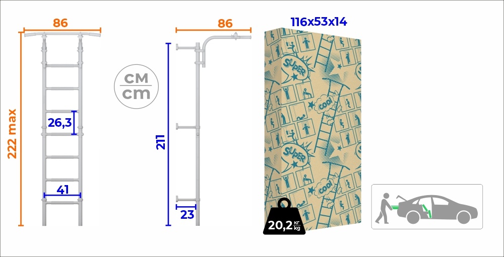 Размеры перекладин (ШxВ)41 см