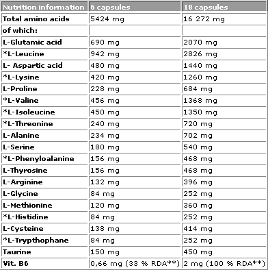 Anabolic Amino 5500 mega caps от Olimp Sport Nutrition — очень мощный аминокислотынй комплекс (5,5 гр. аминокислот (белка) в порции), обогащенный пептидами. Здесь усиленный состав BCAA (чрезвычайно важных аминокислот для силы и массы мышц), а также присутствует таурин и витамин В6 — способствующий максимальному усвоению аминокислот мышечными клетками. Безусловно, аминокислоты Anabolic Amino 5500 mega caps Olimp (Анаболик амино 5500 мега капс Олимп) являются основным строительным материалом для вашей мускулатуры, они увеличивают силу мышц и ускоряют восстановительные процессы, оказывают положительное воздействие на психологический и физический тонус спортсмена, оказывают разрушающее воздействие на подкожные жиры и учувствуют практически во всех жизненно-важных процессах в нашем организме.