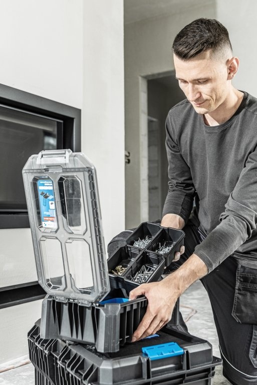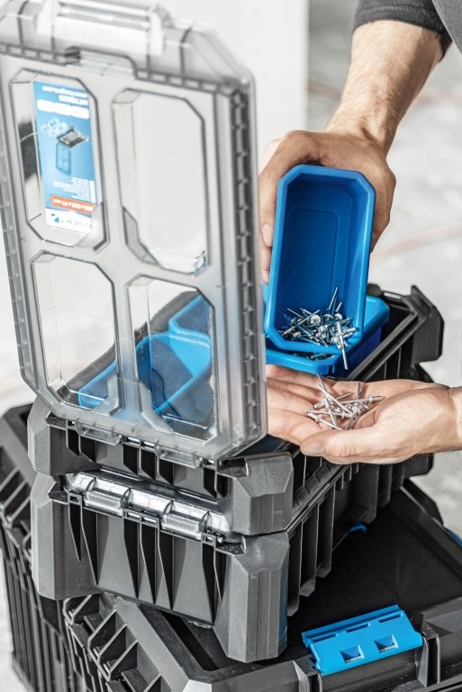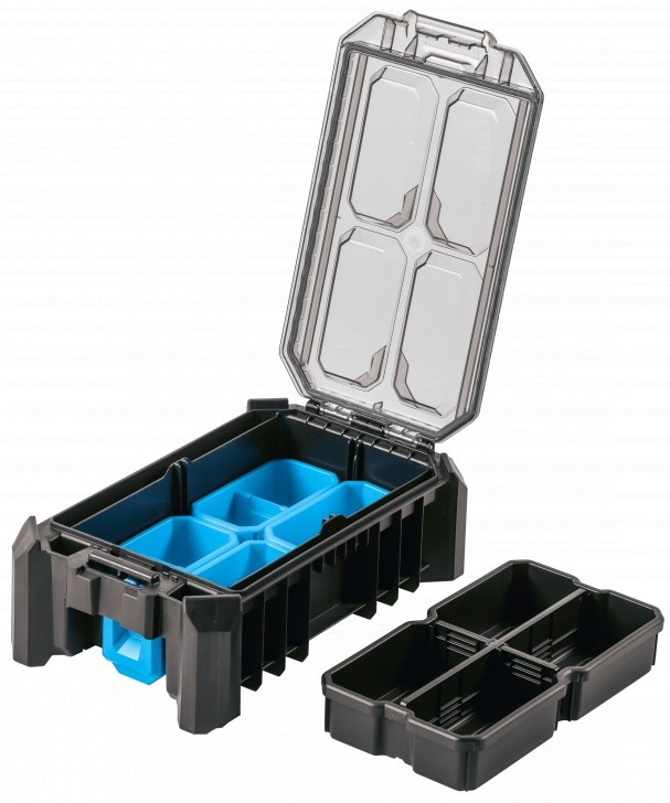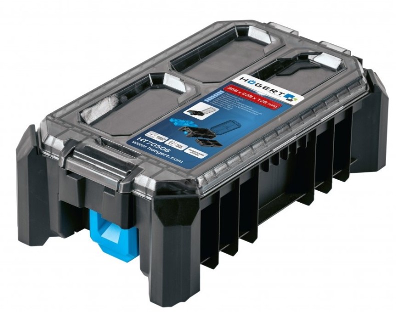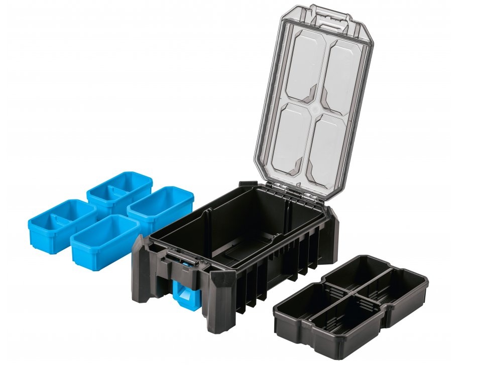 Чемодан для инструментов с крышкой из поликарбоната используется для хранения строительного, слесарного, автомобильного и иного инструмента. Он был создан для требовательных пользователей. Он оснащен 5 функциональными чашами, которые позволяют хранить небольшие инструменты, аксессуары и другие предметы. Органайзер обеспечивает простое совмещение с другими компонентами системы системы модульных ящиков. Прочные застежки из АБС-пластика и металлические петли обеспечивают безопасность при перевозке ассортимента. Корпус органайзера был изготовлен из полимеров. Гарантирует защиту от проникновения воды и пыли. Предназначен для профессионального использования. Он отлично работает во многих отраслях, таких как строительство, промышленность, автомобилестроение или логистика.