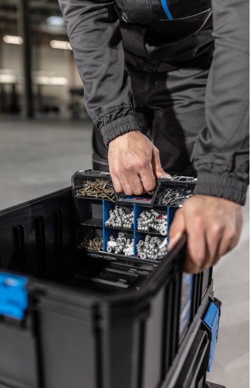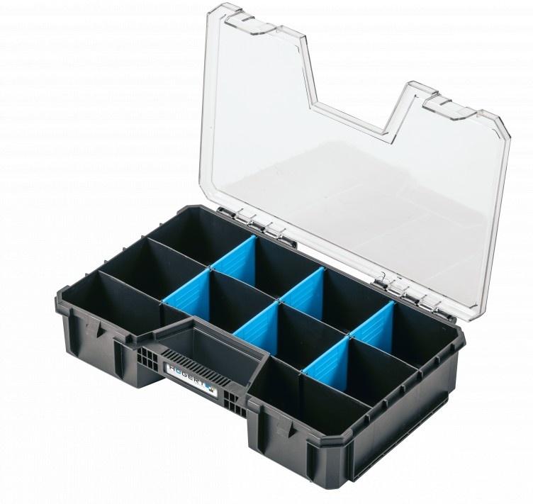 Органайзер с крышкой из поликарбоната с сепараторами, которые облегчают организацию сборных элементов.