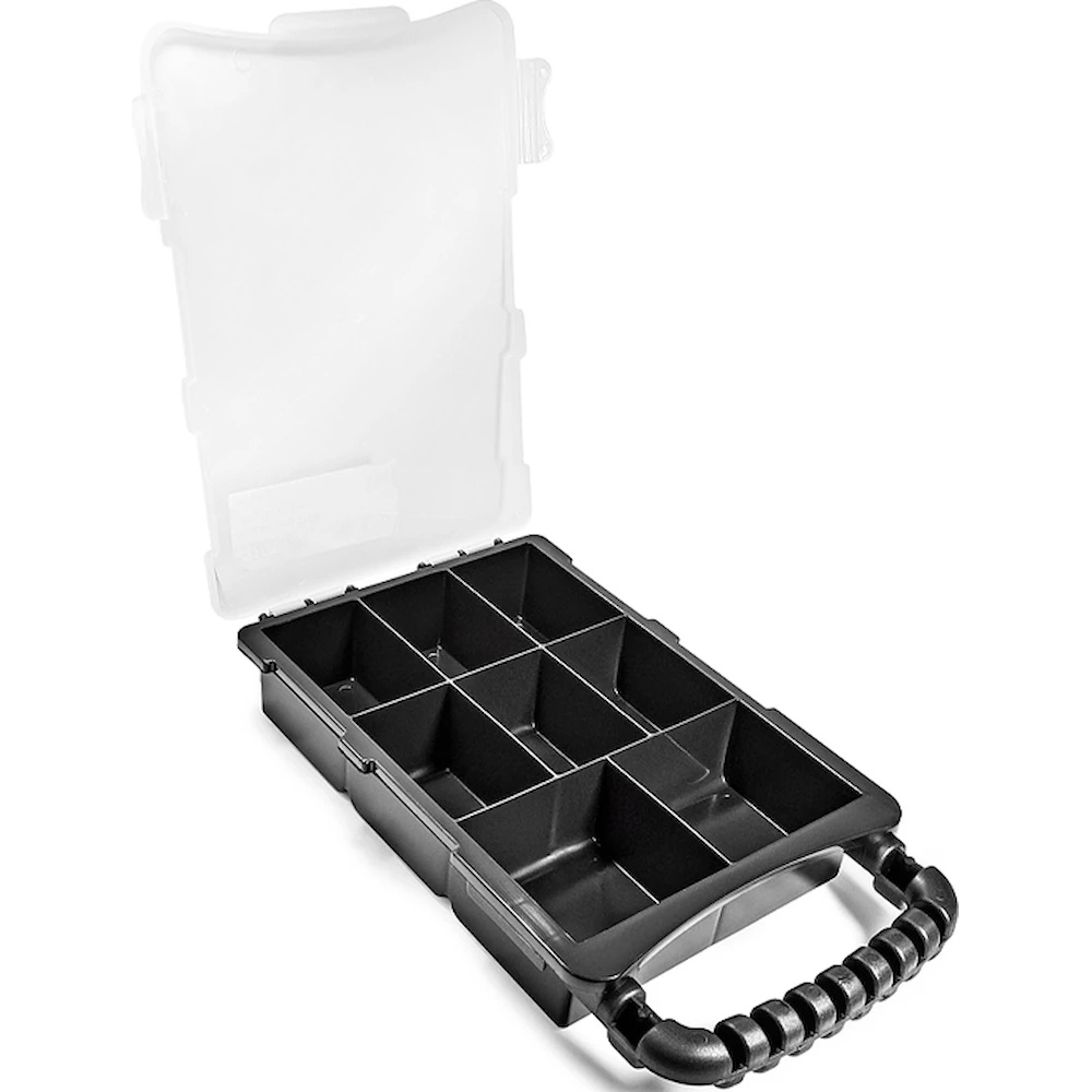 Органайзер Stark SmartBox (100003008) - позволит организовать хранение мелких инструментов, креплений, других небольших предметов. При использовании даст возможность быстро находить нужный инструмент, что значительно ускорит выполнение работ. Изготовлен из прочного пластика, что обеспечит длительный срок службы. Прозрачная крышка даст возможность пользователю быстро определить тип содержимого в органайзере. Надежная защелка предотвращает непроизвольное открытие органайзера. Большое количество отделений для хранения разнообразного инструмента. Наличие удобной ручки для транспортировки.