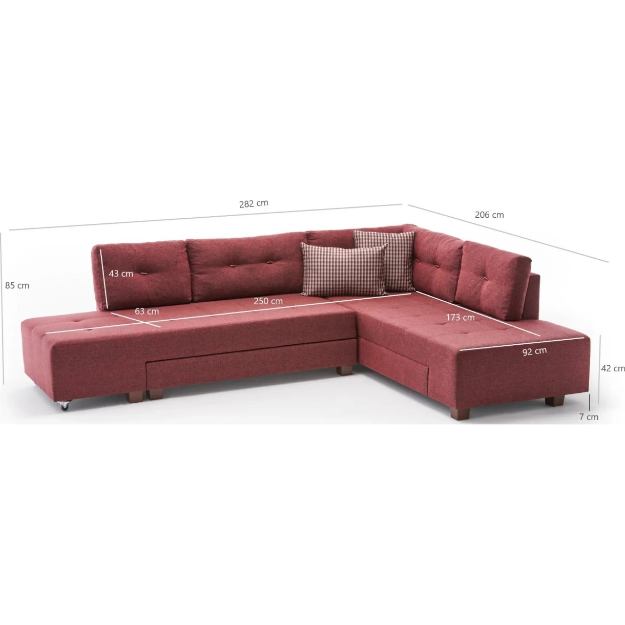 Угловой диван Trendy Manama Claret Red R 282x206x85cm GTR003421