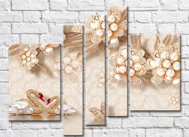 Картина Rainbow Jewelry swans and flowers on a beige background (3551894)