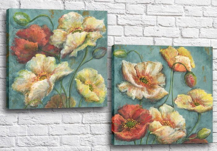 Картина Magic Color Diptych Poppies White and red on a Turquoise background (3428033)