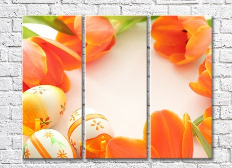 Картина Rainbow Orange tulip flowers and easter eggs (500498)
