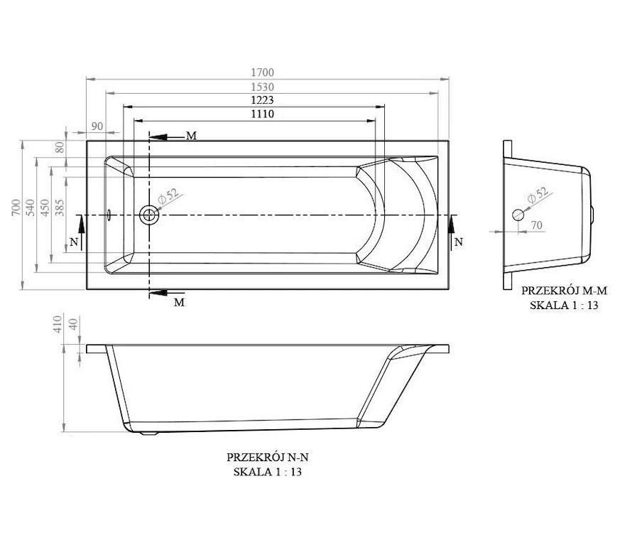 Ванна Bonito Home Aventura 1700x700 (122754)