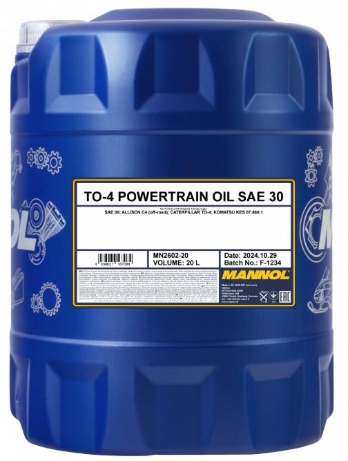 Трансмиссионное масло Mannol TO-4 Powertrain Oil SAE 30 2602 20L