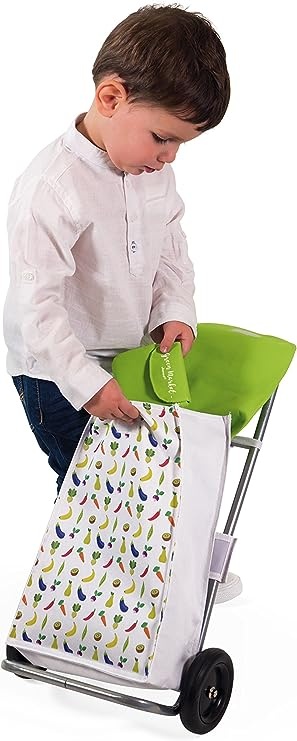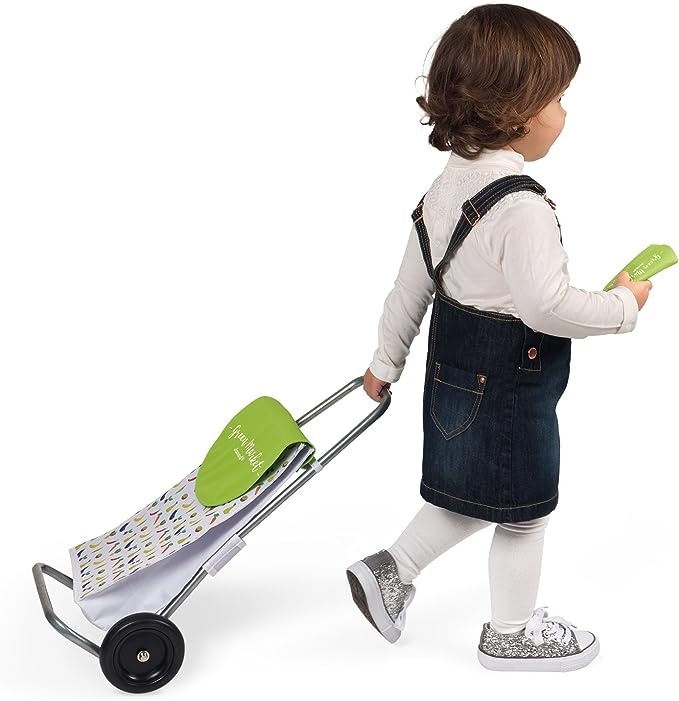 Давайте отправимся на рынок с этой красивой тележкой для покупок и подходящим кошельком. Эти имитационные игрушки являются частью коллекции Green Market, красивой зеленой цветовой гаммы.