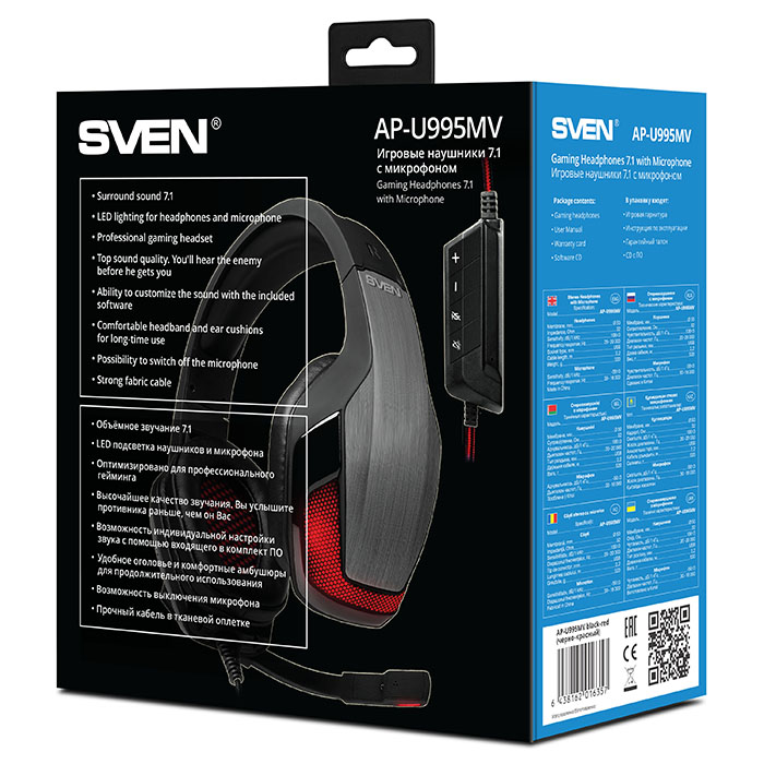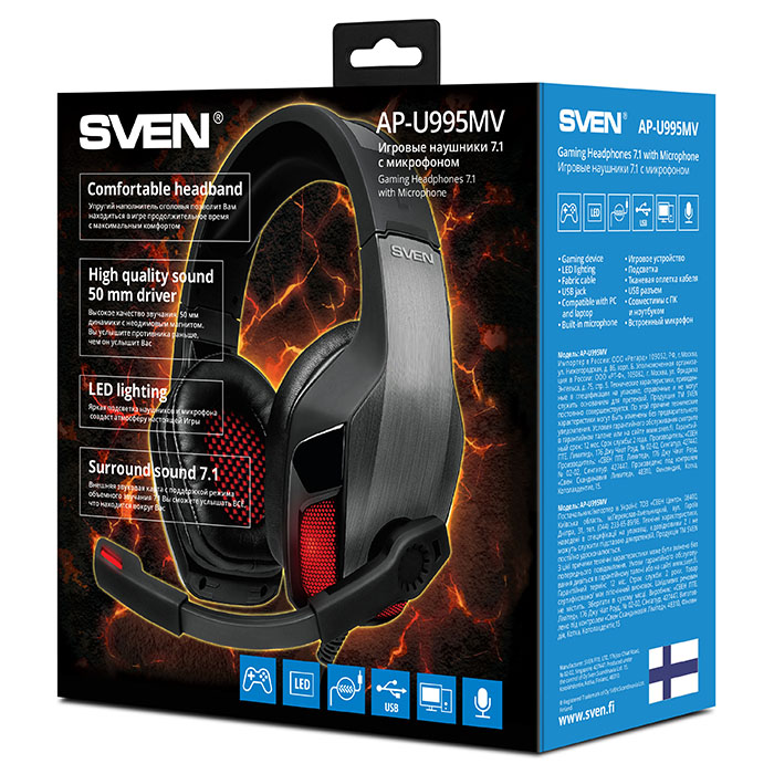 Игровая гарнитура SVEN AP-U995MV с поддержкой режима объемного звучания 7.1 создана для тех, кто привык побеждать.