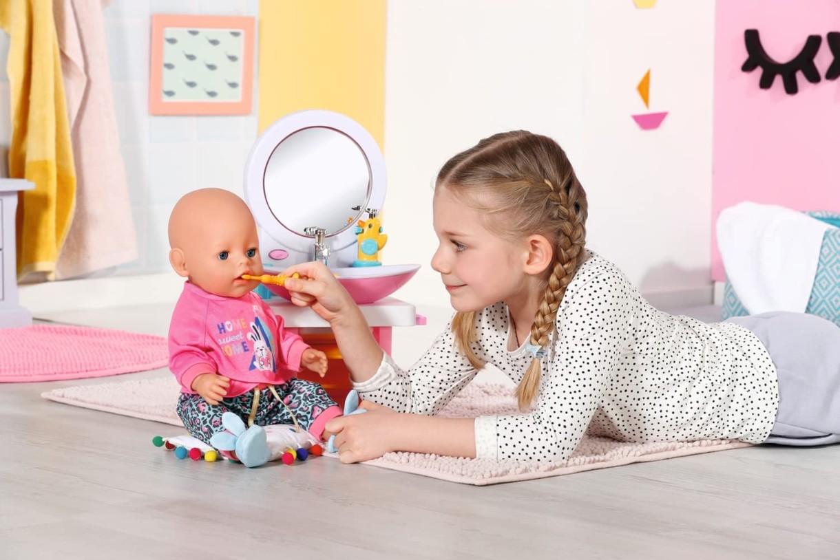 Позаботьтесь о том, чтобы жемчужно-белые зубы BABY Born оставались сверкающими — этот игривый умывальник станет частью вашей повседневной чистки зубов! С крошечным светящимся зеркалом и реалистичными звуками, BABY Born Toothcare Spa — это самый веселый способ поощрения гигиены полости рта — и все это является неотъемлемой частью их творческой игры.