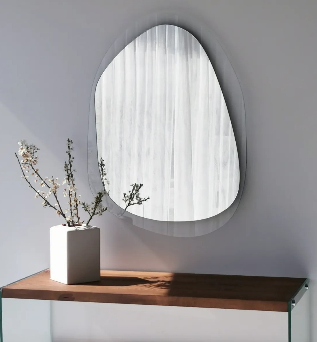 Преобразите интерьер в элегантное и утончённое пространство с этим современным зеркалом. Оно сочетает современный дизайн с эффектом новизны, делая его идеальным аксессуаром для дома, отеля или скандинавского интерьера.