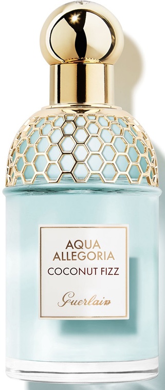 Туалетная вода Guerlain Aqua Allegoria Coconut Fizz входит в уникальную коллекцию Aqua Allegoria, представленную в 1999 году. По словам парфюмеров, композиция гармонично сочетает свежесть одеколона и стойкость, присущую всем шедеврам культового Дома. Уникальность аромата в том, что он позволяет мысленно перенестись на райский остров в Индийском океане. Там белоснежный песок, теплый ветер и бирюзовая вода, сливающаяся воедино с небосводом. Когда волны с тихим шипением набегают на пляж, нежно касаясь ног, хочется только одного — медленно пить освежающую кокосовую воду и наслаждаться мгновением. Изысканное содержимое помещено в ставший уже классикой утонченный флакон, декорированный золотистыми сотами.