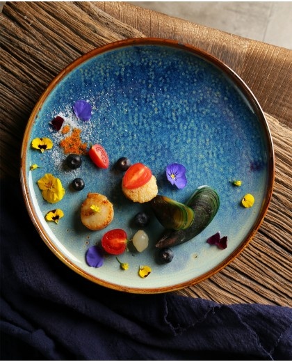 Тарелка плоская Aqua Blue 21 см, изготовлена из высококачественного прочного фарфора с аутентичной отделкой. Посуда покрыта двойной глазурью, что обеспечивает ей повышенную прочность. Каждая тарелка отличается друг от друга уникальным дизайном и цветом благодаря технике реактивного глазирования.