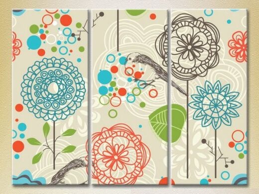 Картина Magic Color Triptych Sparrows on a background of flowers (2229606)