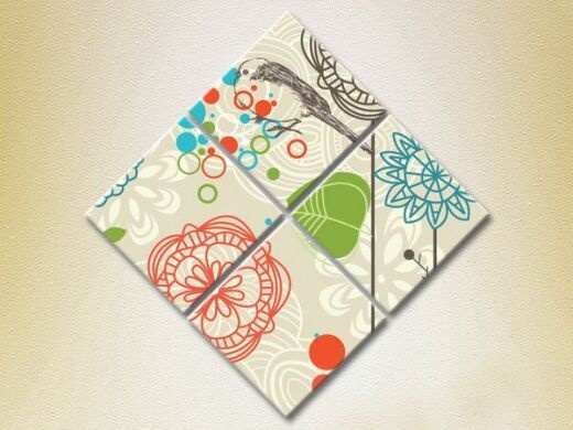 Картина Rainbow Polyptych Sparrows on a background of flowers (2230530)