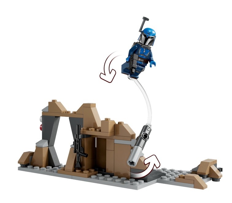 Цифровые инструкции и инструменты для просмотра с масштабированием и поворотом доступны в приложении LEGO Builder, чтобы дети могли больше увлекаться строительством. Скальное образование/ пещеру можно соединить с мандалорской базой в боевом наборе Паз Визсла и Мофф Гидеон (75386, продается отдельно) для получения дополнительных игровых возможностей.