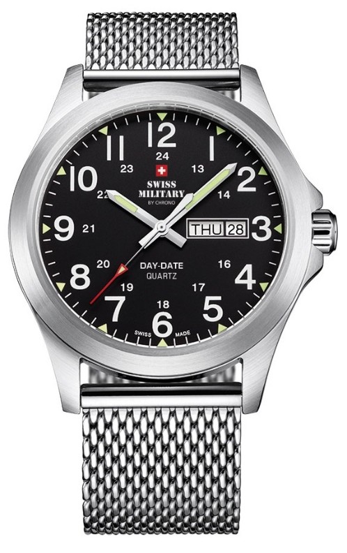 Кварцевые часы. Водостойкость WR 50. Часы, минуты, секунды, дата, день недели, 12/24х часовой формат времени. Корпус выполнен из нержавеющей стали. Диаметр корпуса 42 мм. Минеральное стекло с сапфировым покрытием. Заводная головка с защитой. Браслет миланского плетения, выполнен из нержавеющей стали.