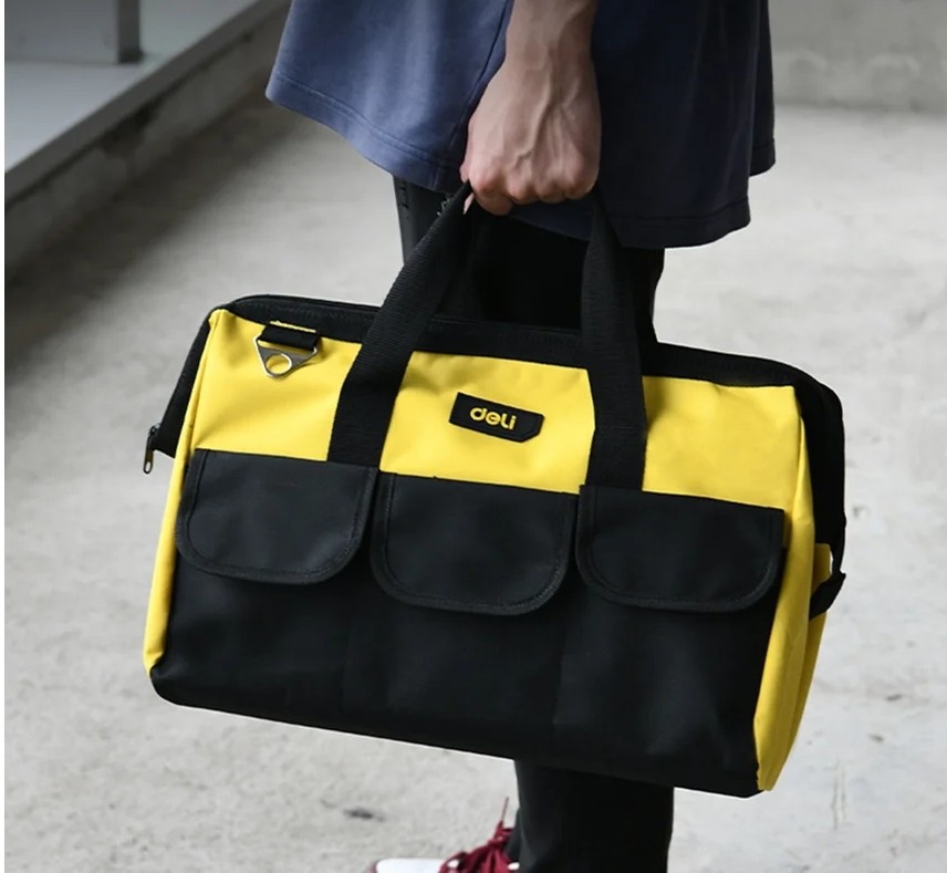 Сумка для инструментов Deli DL430018 используется для хранения и транспортировки инструмента, хранения малярных и отделочных инструментов, прекрасно подходит для похода на рыбалку и даже в качестве сумки для фитнеса.