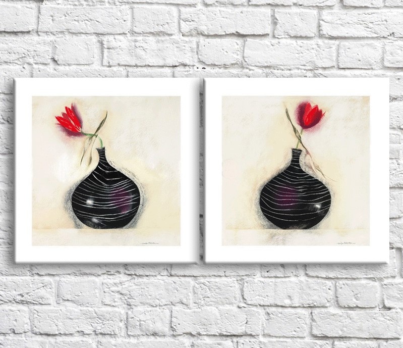 Картина ArtPoster Red tulip in a Black vase on a White background, diptych (3467742)