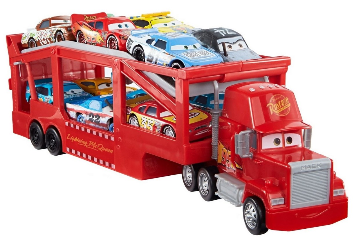 С транспортером по мотивам “Тачек” ни один гонщик не будет забыт! Игрушечный грузовик по имени Мак может вместить в себя 12 машинок-персонажей по мотивам анимационного фильма Cars. Верхний уровень транспортера и его задняя дверь превращаются в пандусы, по которым гоночные машинки могут с легкостью въезжать и выезжать. Когда вся команда будет в сборе, остается только подтолкнуть грузовик, чтобы незамедлительно отправляться в путь! Поклонники “Тачек” и малыши от 3-х лет смогут разыграть свои любимые сцены с большого экрана и придумать новые приключения веселых героев, ведь для их воображения открыты все дороги! Цвета и декор могут отличаться от изображений.