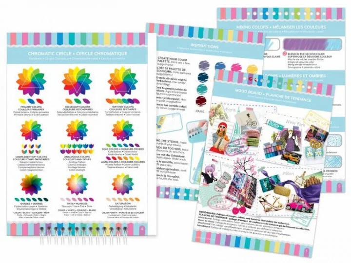 Комплектация200 наклеек, лист с трафаретом, 30 листов для раскрашивания, руководство для дизайнера с техниками рисования