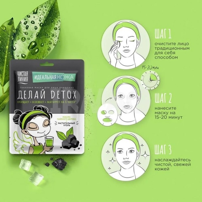 Чистая и свежая кожа без жирного блеска на 8 часов всего за 15 минут? Это реально с новой тканевой маской от бренда Чистая Линия! Тканевая маска для лица Чистая Линия Очищение и Детокс с углем и маслом чайного дерева очищает кожу и избавляет от жирного блеска с 1 применения.