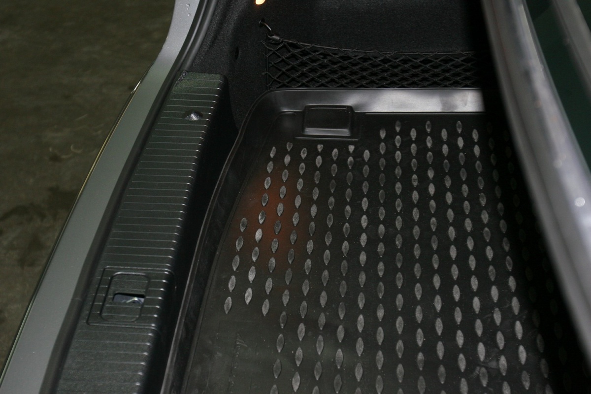 Коврик изготовлен из современного, экологически чистого полимерного материала, который имеет пластичность натурального каучука. Коврик индивидуально разработан для каждой модели автомобиля, поэтому он идеально вписывается в пространство. Высокие стороны крепко прилегают к стенам и не допускают попадания мелкого мусора, пыли, грязи и влаги. Полиуретановые коврики легче, чем резиновые, в 2,5 раза, поэтому их можно легко снять и сложить. В этом случае накопленная грязь не попадает в багажник. Коврики прекрасно очищаются любым моющим средством. Поверхность полиуретанового коврика имеет противоскользящий эффект. Это означает, что вещи в багажнике не будут двигаться даже на крутом повороте. Данный коврик прекрасно впишется в ваш автомобиль. Так что если вам нужен высококачественный коврик в багажник, то это отличный вариант для вас.