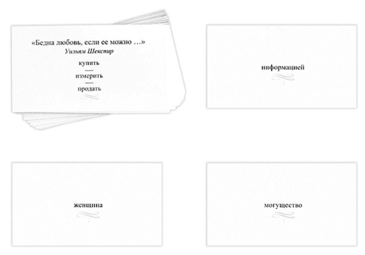 На лицевой стороне карточки написана цитата известного человека, в которой выпущено одно слово. На этой же стороне карты три варианта ответа. Правильный только один.