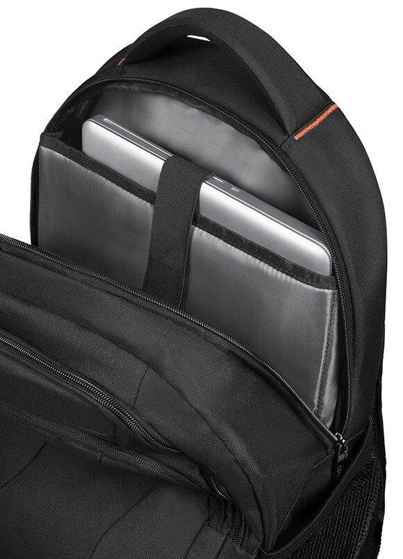 Практичный, очень выносливый и с гармоничным дизайном, рюкзак для ноутбука 15,6 дюймов, планшета и бумаг. Плотный полиэстер черного и синего цветов сочетается с лаконичной отделкой. Логотип American Tourister, вышитый на фасаде, подчеркивает статус рюкзака American Tourister 33G*002 AT Work Laptop Backpack 15,6″ и говорит о высоком качестве исполнения.