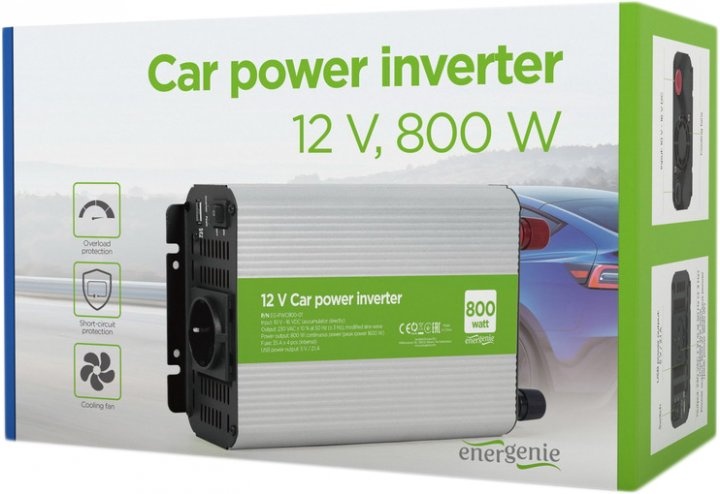 Автомобильный инвертор EnerGenie EG-PWC800-01 мощностью 800 Вт с одним гнездом. Позволяет подключать любую электронику с питанием от переменного тока (макс. 800 Вт), например, ноутбуки, зарядные устройства для мобильных телефонов / фотоаппаратов, электрические инструменты и т.д. Автоматическая защита от перегрева, перегрузки и короткого замыкания, а также встроенный охлаждающий вентилятор обеспечивают стабильное питание. Так же есть светодиодный и звуковой индикатор состояния.