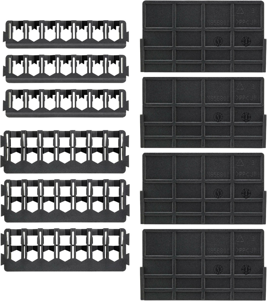 Держатели бит и перегородки изготовлены из прочного пластика, что гарантирует их долговечность и устойчивость к износу. Черный цвет аксессуаров придает им стильный и современный вид, который будет гармонично смотреться в любом рабочем пространстве.