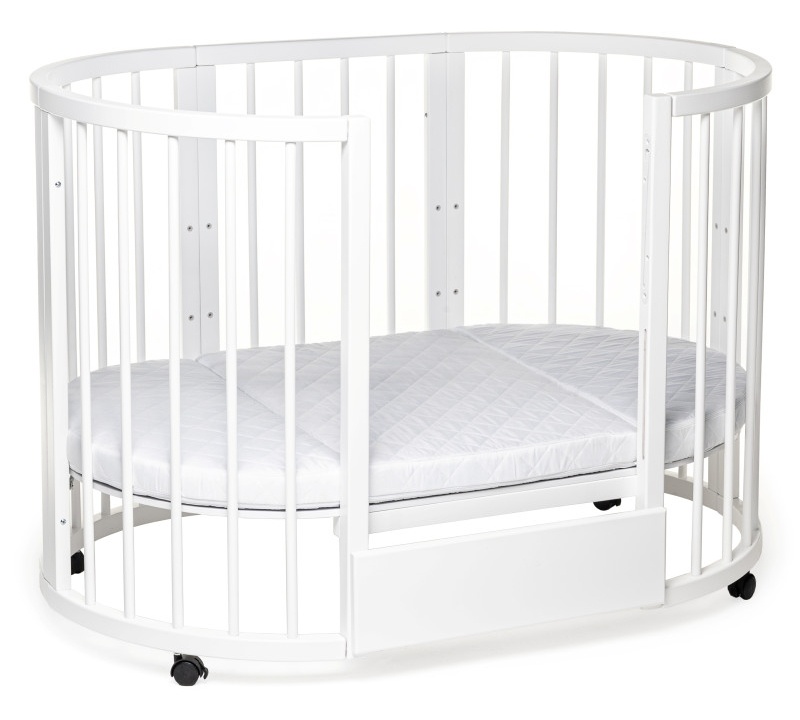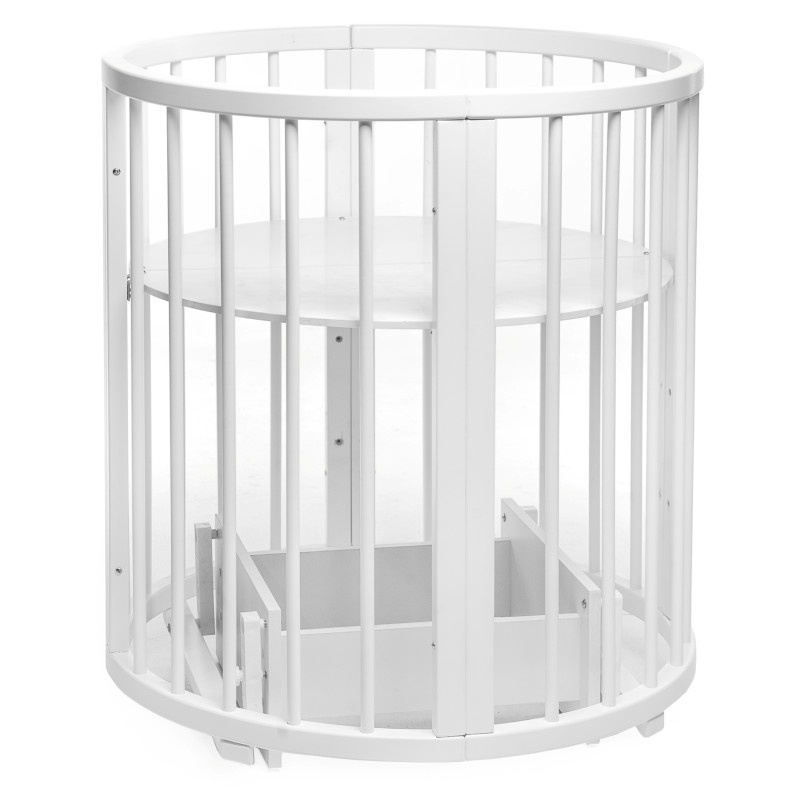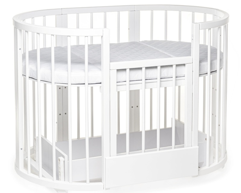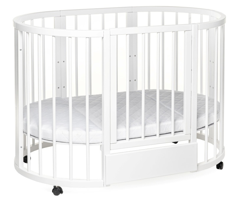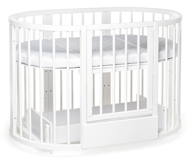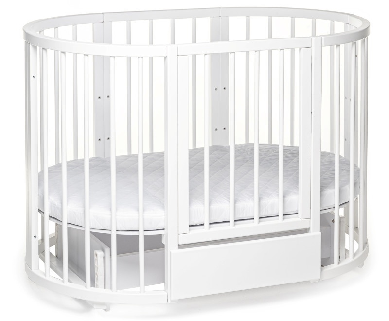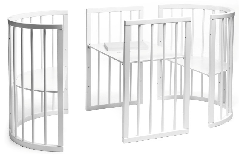 Закругленные края деталей не позволят Вашему малышу удариться. Регулировка высоты позволяет подстроить кроватку под потребности ребенка и родителей. Овальная кровать трансформер позволит Вам также сэкономить на покупке отдельной мебели.