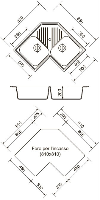 Размер мойки830x830 мм