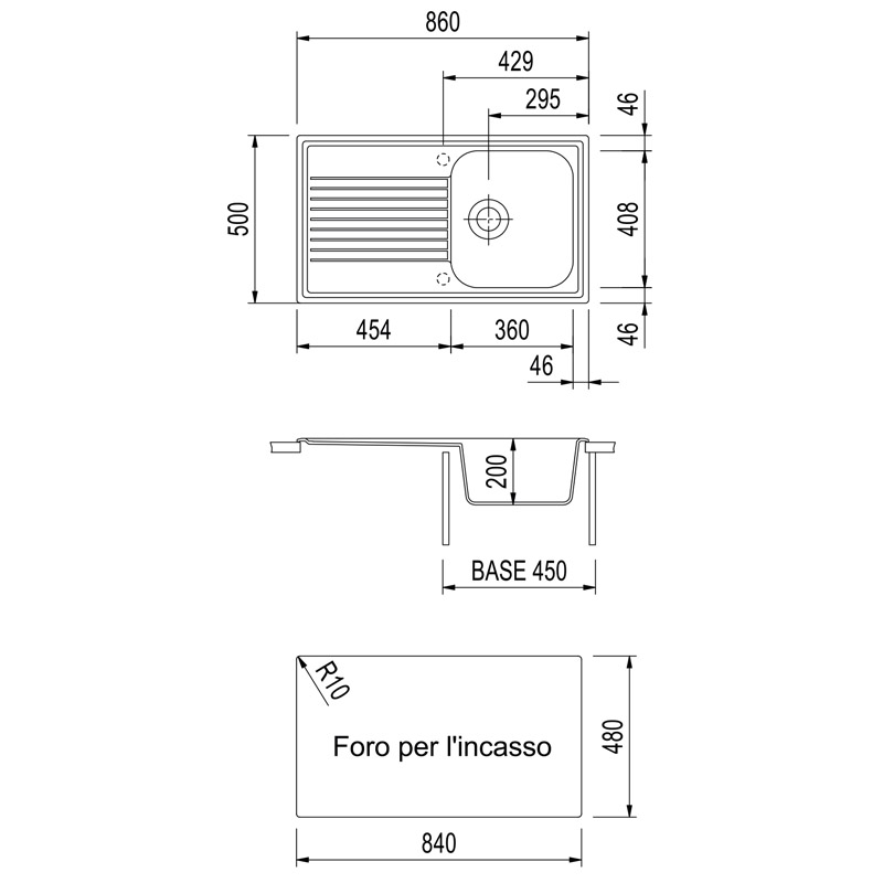 Размер мойки860x500 мм
