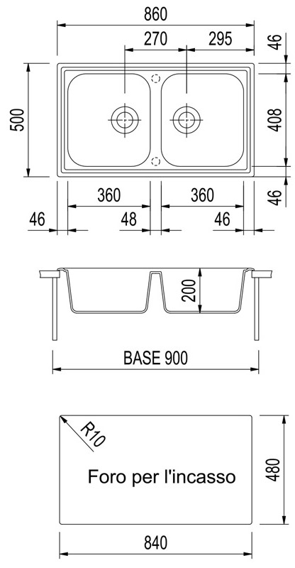 Размер мойки860x500 мм