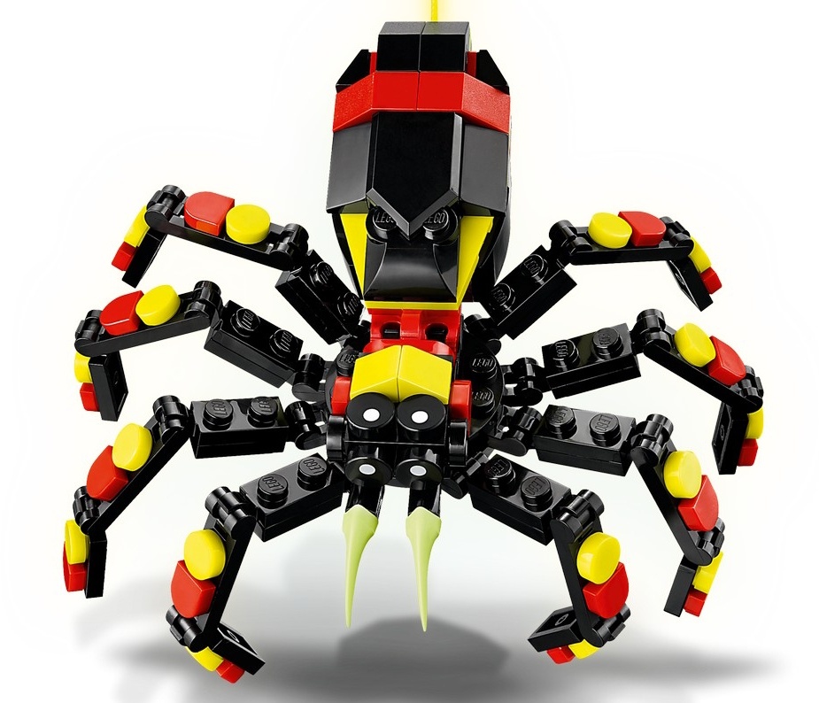 Поклонники забавных животных получат 3 различных варианта постройки из конструктора LEGO®. тот же набор кубиков: можно изготовить игрушечного паука LEGO на растягивающейся веревочке, можно изготовить фигурку скорпиона или величественную игрушечную змею. Все 3 фигурки животных из этого набора-трансформера станут оригинальными и веселыми подарками для детей.